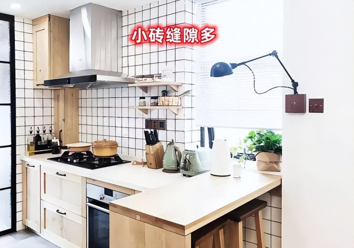 很多人喜欢小砖,觉得好看又精致。但厨房这种地方,缝越多越容易藏污纳垢,刷起来真的累。