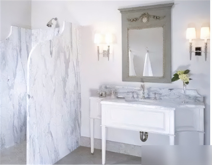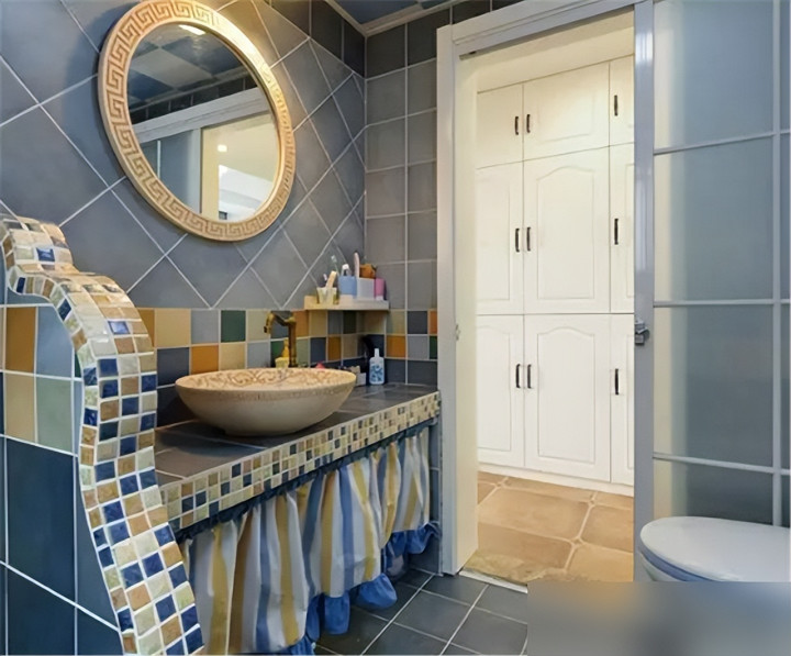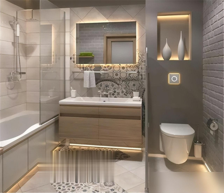 喜欢简约风的,大理石配弧形边,和洗手台色调统一,高级感拉满;想要温馨氛围,防水木格栅透气又防潮,洗澡时水汽不闷人;年轻人试试马赛克拼色,活泼又亮眼,每天进卫生间心情都跟着亮起来。